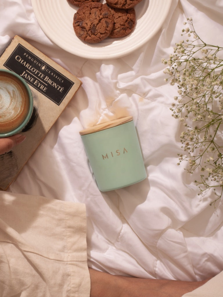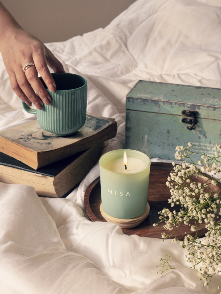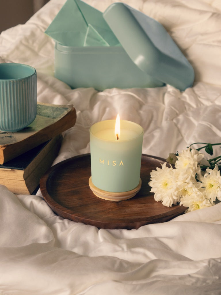 The night sky gives way to dawn and the first rays of the sun caress the mountain top. Experience a sprightly new day with crisp notes of Green Tea and Mint at the very heart of this cheery candle.