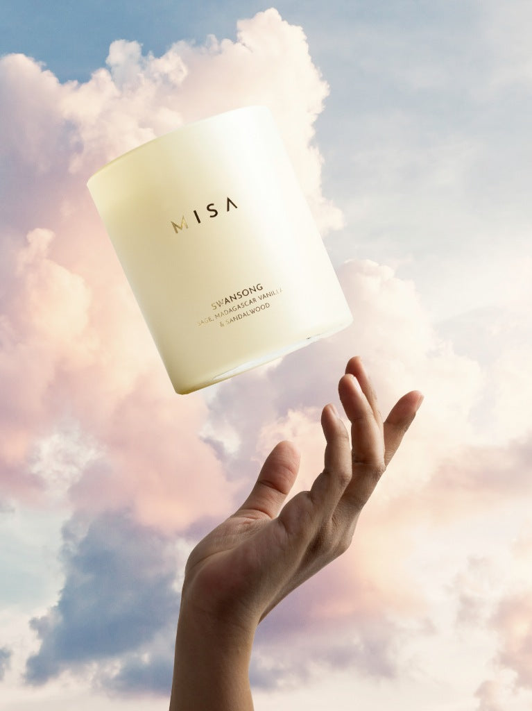 Revisit that heady feeling of your best days with Swansong. This tranquil scented candle uplifts and grounds you at the same time, with its comforting notes of Sage, Madagascar Vanilla and Sandalwood.